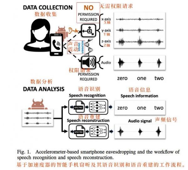 但实际上,计步器可在用户不知情、无需系统授权的情况下,利用手机内置加速度传感器采集手机扬声器所发出声音的震动信号,实现对用户语音的窃听。
