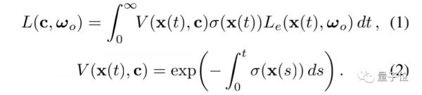 假设现在有一条通过NeRV的相机射线x(t)=c tωo,使用以下过程来渲染: