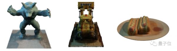 团队分别在不同的数据集上训练模型,然后对雕像、推土机、热狗三个图像进行还原。