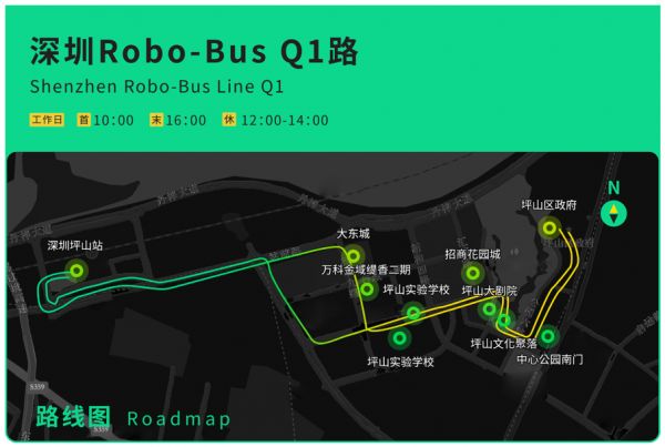 近日,深圳坪山区推出全国首张无人公交月卡,持有月卡的市民可乘坐深圳首条微循环无人公交线路进行日常通勤。该线路总长约5公里,沿途设置10个站点,贯穿深圳坪山站周边居民区、学校、剧院、公园和办公区等核心地点。市民可报名“早鸟计划”,免费申领月卡,可在手机上查看下一趟小巴的当前位置和预估到达时间,凭小程序扫码上车。