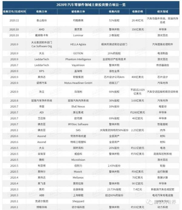 另一条路则是汽车零部件产业的主流,即各种造车势力对零部件产业的并购整合。据普华永道报告,2020年全年,全球汽车零部件企业的并购交易总量超过200笔,这一数字还未包括股权收购和合资项目,而且交易趋势出现加速迹象,上半年仅达成55笔,下半年就猛然上升了超过100宗,其中包括4笔总价值超过190亿美元的超大型并购交易,热度由此可见一斑。