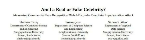 韩国成均馆大学在Arxiv.org上发表的一篇论文证明了最常用的Deepfake方法就能骗到微软和亚马逊的API。