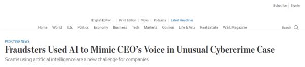 据悉一家欧美的主要能源生产商就曾被Deepfake敲诈过。今年3月,犯罪分子利用人工智能的软件模仿一位首席执行官的声音,索要一笔22万欧元(合24.3万美元)的欺诈性转账。