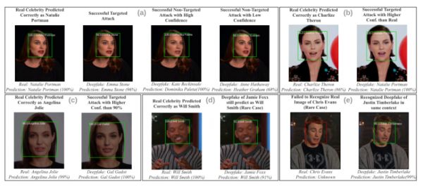 明星相比普通人的可用图像数量多,因此研究人员能够相对容易地从中生成Deepfake。谷歌通过其云视觉API提供名人识别功能,但研究人员表示谷歌拒绝了他们使用该功能的正式请求。