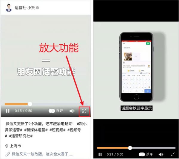 但是,当你打开视频号内容进行观看的时候,你会发现,右下角添加了一个放大功能。