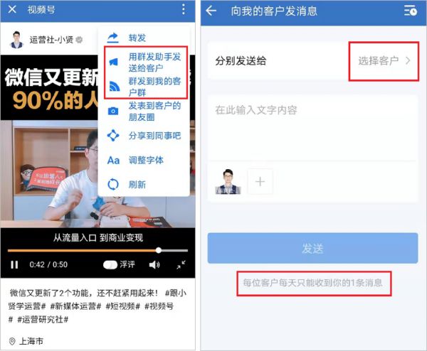 还可以通过群发助手,将视频内容群发给客户或客户群。