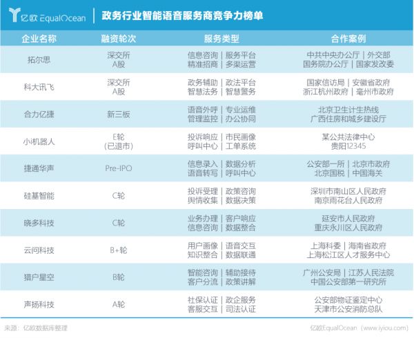 政务行业智能语音服务商竞争力榜单