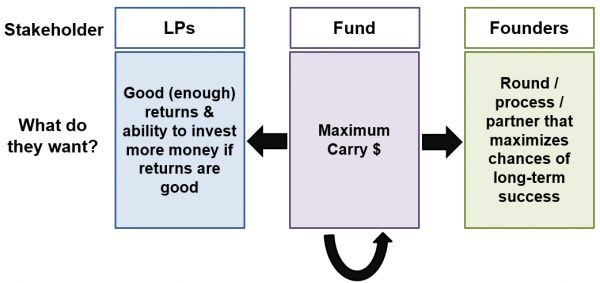 风投/成长型基金对三个利益相关者群体负有责任——他们的有限合伙人(投钱给基金去投资的人),(接受投资的公司的)创始人,以及自己的普通合伙人/经理(基金希望他们能致富或更富有)。