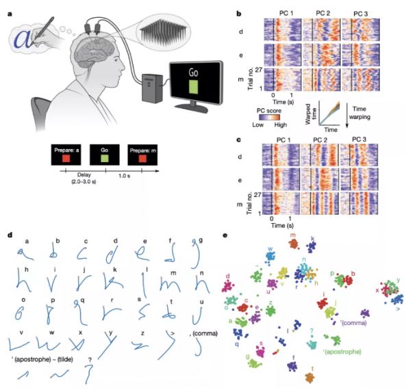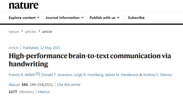 5月12日,《Nature》发布最新一期封面研究:斯坦福大学的研究人员开发了一项新的脑机接口技术,能够使瘫痪患者直接将脑海里的“想法”转换为电脑屏幕上的手写文字,“打字”速度突飞猛进!