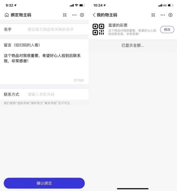 绑定防丢,但把这个挂在包上能不能找回来还是得看人品;隐私保护,对方扫码后打的电话是虚拟电话,你接到的电话也是虚拟电话,从这角度来看确实不会泄露隐私;快速联系,拾物者扫码之后就能直接拨打电话,不用再复制号码;永久免费,除了出售环节,我确实也不大想得出这还能怎么收费。