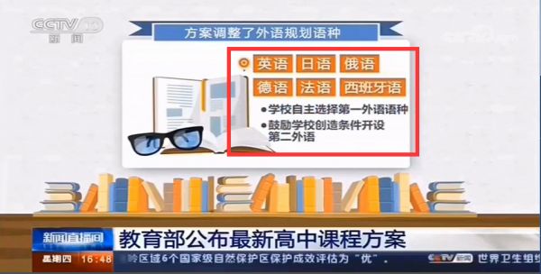 2020 年 1 月初,教育部公布的《2020 年普通高等学校招生规定》,正文明确指出「全国统考科目中的外语分英语、俄语、日语、法语、德语、西班牙语等 6 个语种,由考生任选其中一个语种参加考试」。2020 年 6 月,央视公布教育部最新高考课程方案截图,高考日语与英语及其他四个小语种并列为外语语种。
