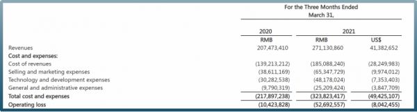 除此之外,技术研发成本和一般以及行政费用也有不同程度的增加。总计 2021 年 Q1 总成本为 4942 万美元,同比增长 48.6%,环比下降 8.6%。