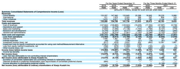 在营收方面,滴滴出行在2018年、2019年和2020年的收入分别为人民币1353亿元、人民币1548亿元和人民币1417亿元,截至2021年3月31日止三个月的收入分别为人民币422亿元。
