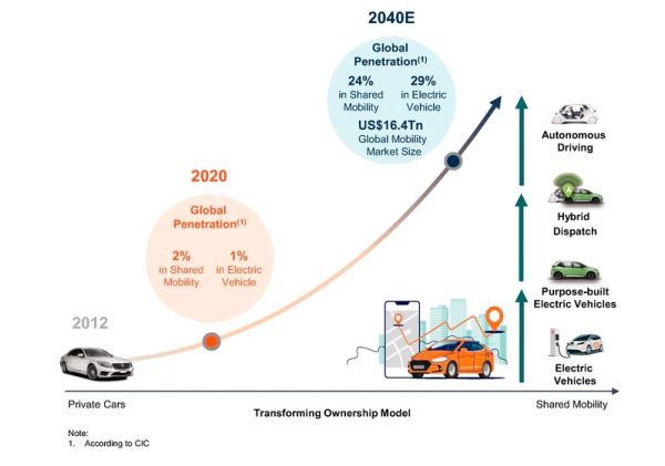 电动汽车的日益普及和自动驾驶的商业化将进一步促进移动性的增长,尤其是共享出行。滴滴方面预计,从私家车和公共交通等传统出行方式向共享出行方式的转变将进一步加速。
