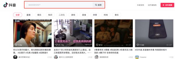 另外,抖音官方提到网页版的另一个亮点在于搜索框,在首页中我们可以见到搜索框出现在非常显眼的位置,为此我们也不难理解抖音的用意:希望我们在网页版上多多利用搜索功能。
