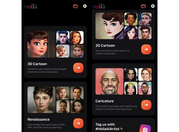 如果Volia AI Airtist的功能仅仅只以上展示的让你能够变成卡通人物,那即使效果再好,可能也撑不起这么多的喜爱。实际上,这款软件的卖点除了“迪士尼”风之外,还包括有文艺复兴、2D卡通、漫画风格等各种不同风格和不同色调的“变脸”功能,而且也都一样保持了高水准输出。