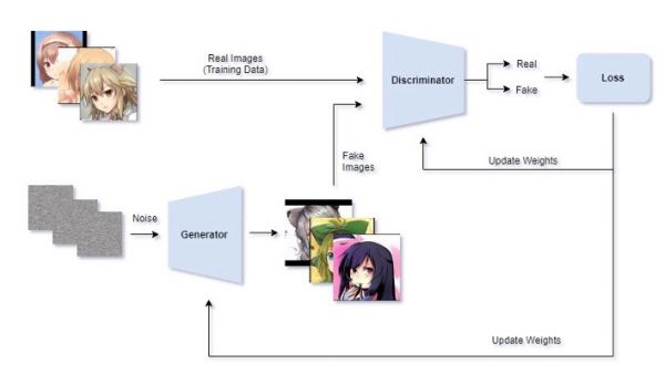 GAN架构,来源于towardsdatascience网站“使用 StyleGAN2 生成动漫角色”