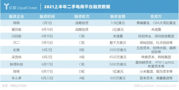2021年上半年,二手电商赛道绝对算得上是资本市场的“宠儿”。公开数据显示,上半年国内二手电商领域有8家平台共获得9起融资,融资总额超57亿元人民币。