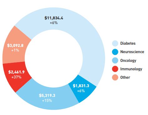 表面上看,其糖尿病产品销售额较上年提升8%,似乎还算理想。