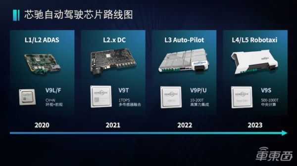 2023年,芯驰将推出具有更高算力的V9S自动驾驶芯片,该芯片面向中央计算平台架构研发,算力高达500-1000T,可支持L4/L5级别的自动驾驶的Robotaxi。