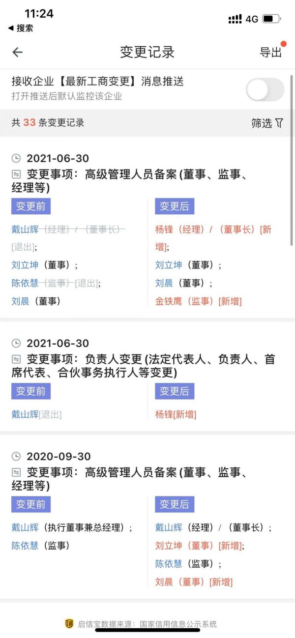 启信宝显示,2021年6月30日,食享会创始人戴山辉不再担任食享会的运营公司、武汉七种美味科技有限公司董事长、经理职务,由杨锋接任。监事陈依慧也在同日退出,金铁鹰接任。戴山辉为公司大股东,持股近84%。