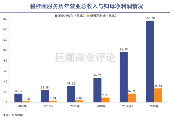 投资者判断,物业公司可以利用自身的管理权获得一定的“垄断社区服务提供”能力,进而实现业绩的稳定增长。其中具有代表性的就是市值在2000亿港元以上的碧桂园服务(HK:06098),在过去几年保持了收入、利润的高速增长,享受了相比地产公司超高的估值水平。