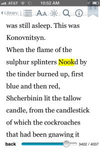 电子书没有这些限制,这是因为新版本可以随时创建,而且事后对现有版本进行 “更新 ”太简单了。想想菲利普·霍华德的经历,他在2010年坐下来阅读纸质版的《战争与和平》。在阅读这本砖头大小的巨著时,他为他的Nook电子阅读器购买了一个99美分的电子版,在阅读这个电子书版本时,在和实体书对照之后,他发现书里把kindled替换为了Nooked。
