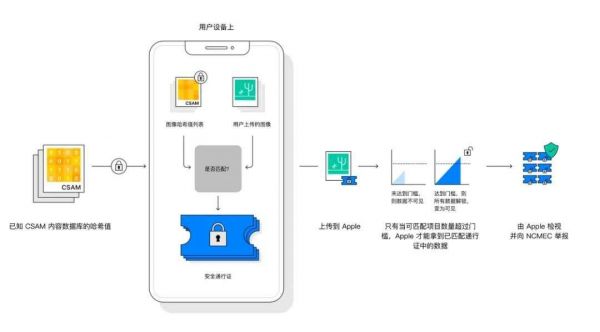 检测 iCloud 图库中的未成年人色情图像,在超过一定门槛后禁用账户同时向安全部门举报