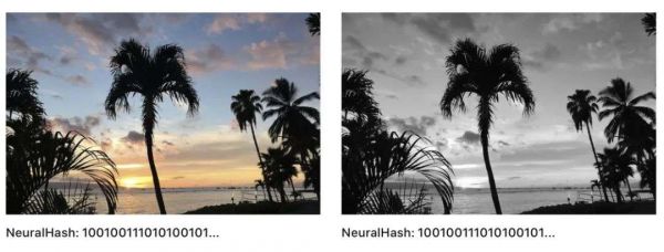 一张图片和它的黑白版本具有相同的 NeuralHash 哈希值。图源:Apple 给出的技术简介