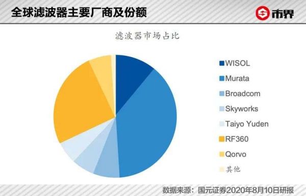 目前,射频滤波器市场基本被美国厂商思佳讯(Skyworks)、博通(Broadcom)、Qorvo,日本厂商Murata、TDK等瓜分。中国企业占据的市场份额较少,通常躺在“其他”一栏。