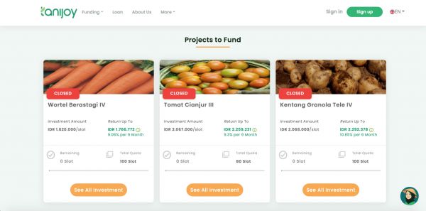 2019年在 Instagram 上看到一则广告时,雅加达居民 Fadhil 第一次听说了 Tanijoy。该公司将自己标榜为农业项目的 P2P 贷款平台,贷款人可以选择投资 Tanijoy 在印尼的数十个项目,并在项目利润翻红后回笼资金。