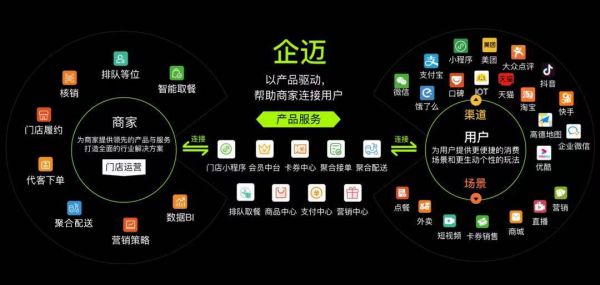 因此,企迈科技从2016年6月投入线下门店用户运营解决方案SaaS产品的研发,已经上线的产品有:门店经营小程序、全渠道用户系统、卡券系统、商品中心、订单中心、聚合外卖、排队取餐等产品,帮助商家连接用户,实现用户的数字化经营。在生态协作方面,企迈科技与支付宝、微信、美团、抖音等平台建立了良好的合作关系,进一步赋能更多商家。