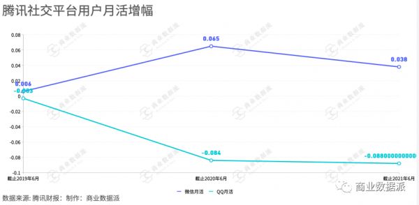 此外,不得不提的是腾讯曾经的老牌社交强势点——QQ。近三年,QQ的移动终端月活跃账户数增速一直为负。2020年11月的腾讯财报中,数据曾显示:微信用户超12亿,QQ用户仅6.17亿。在微信在市场上的绝对优势下,QQ的声音越来越小,后者似乎不能获取新一代用户的“芳心”。