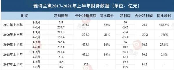 也就是说,算上今年第一季度251亿元的销售额,今年上半年雅诗兰黛集团共卖了506.7亿元,同比2020年上半年增长35%;净利润96.2亿元,相比去年同期30.2亿元的亏损,增长了126.2亿元,增幅高达418.5%。