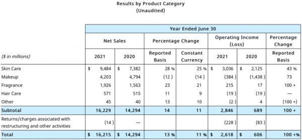 ▍截自雅诗兰黛2021财年业绩报告