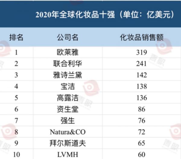 那么,在经历了疫情给全球化妆品市场带来的持续影响后,全球化妆品十强名单及排名又发生什么变化?
