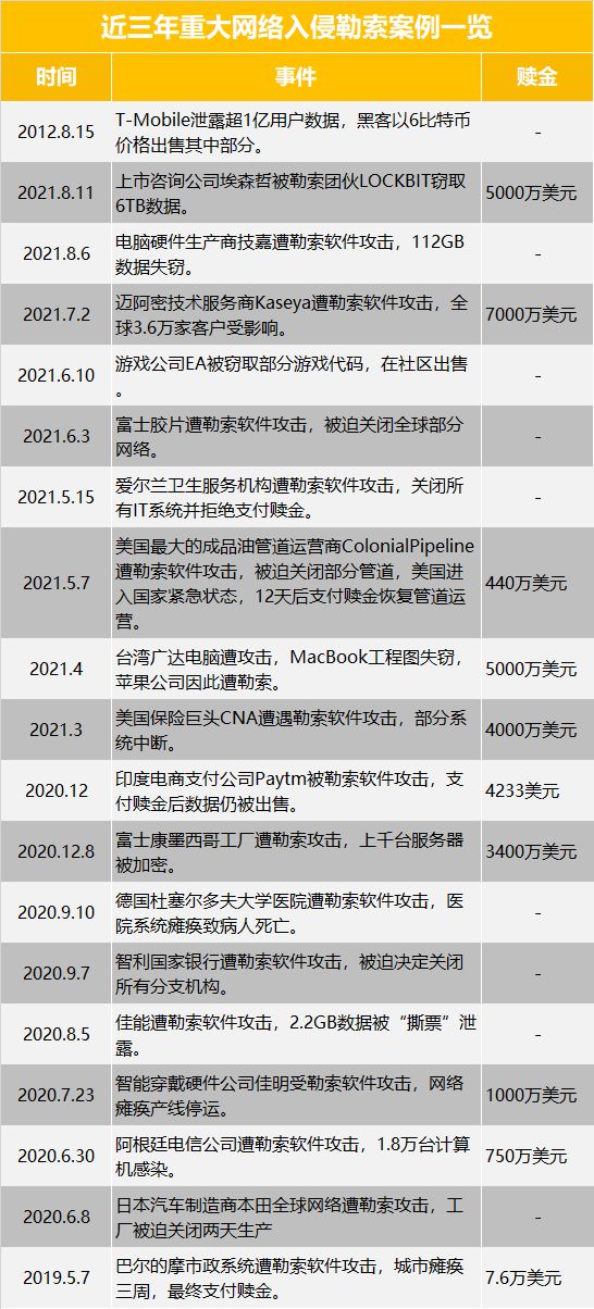 近三年重大网络入侵勒索事件一览 | 放大灯团队制图