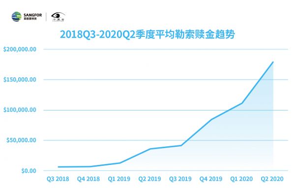 Unit 42勒索软件威胁报告显示,受勒索企业支付的平均赎金从2019年的11.5万美元增加到2020年的31.2万美元,同比增长171%[10]。到今年上半年,平均赎金又突破80万美元[4],而单次勒索赎金最高纪录已高达7000万美元[11]。