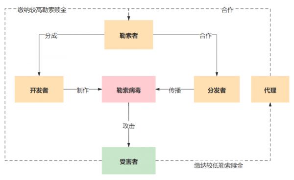 如此大张旗鼓的勒索,必然不是几个人的团队小打小闹。现在的勒索行业,甚至出现产业化趋势,形成了勒索软件即服务(RaaS)——一种开发者提供勒索软件,分发者入侵和勒索企业,前者从后者所获赎金中抽成的商业模式。