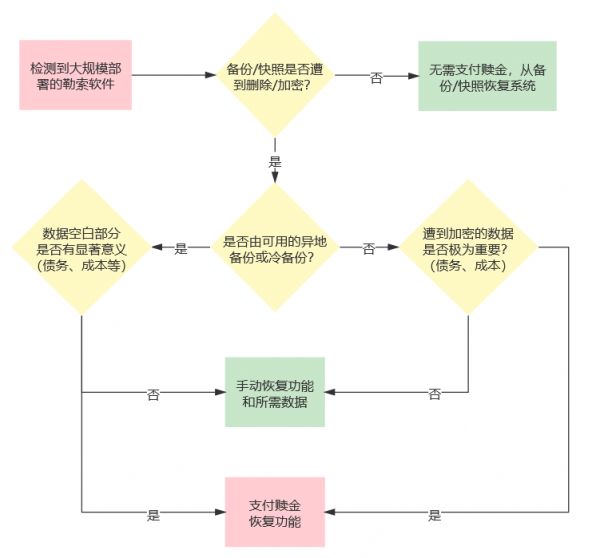 国内中大型企业,都有自己的安全中心,安全策略跟进速度快,能够把大部分勒索攻击拒之门外。而一般小公司若无机密数据,出了事也不在乎。数字化转型后的企业,会定期备份数据,一旦遭遇勒索,只要从云端恢复即可。