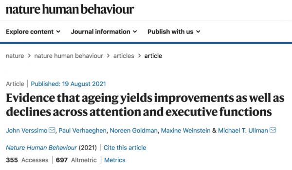 在此次研究中,从神经学的角度来看,经验和不断学习的重要性首次在大样本调查中得到了验证,这或将使我们重新定义和看待衰老,进而对“老龄化人口”的认识产生变革性影响。相关研究论文以“Evidence that ageing yields improvements as well as declines across attention and executive functions”为题,已于 8 月 19 日发表在《自然-人类行为》(Nature Human Behaviour)杂志上。