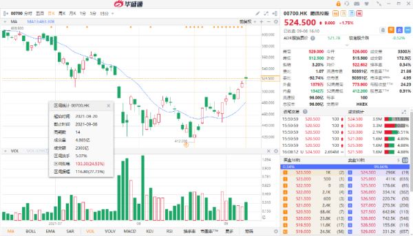 本轮科网股连续下跌之后,腾讯开启了回购。根据华盛通APP数据显示,腾讯自8月19日开始进行回购,截至9月7日总共进行了12次回购操作,涉及金额高达10.4亿港元。巧的是,8月20日腾讯股价即见阶段性低点,腾讯“抄底”大获全胜。