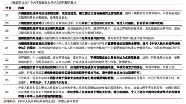 中信证券认为,一系列的法律法规出台或将导致基于大数据和算法能力的程序化广告投放和收入规模受到一定程度的影响,同时互联网公司需要在数据安全监测、评估、维护以及数据去标识化和匿名话等方面加大投入。