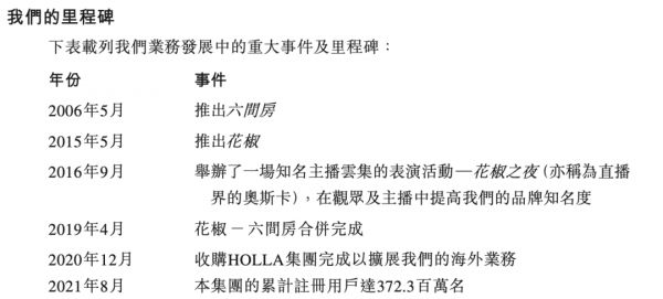 用户方面,截至2021年8月31日,花房集团共有3.72亿注册用户,花椒和六间房的累计注册用户量分别为2.07亿和7730万,花椒拥有1010万主播,六间房拥有50万主播。