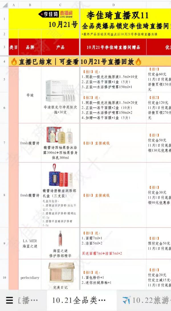 李佳琦双十一攻略部分文档