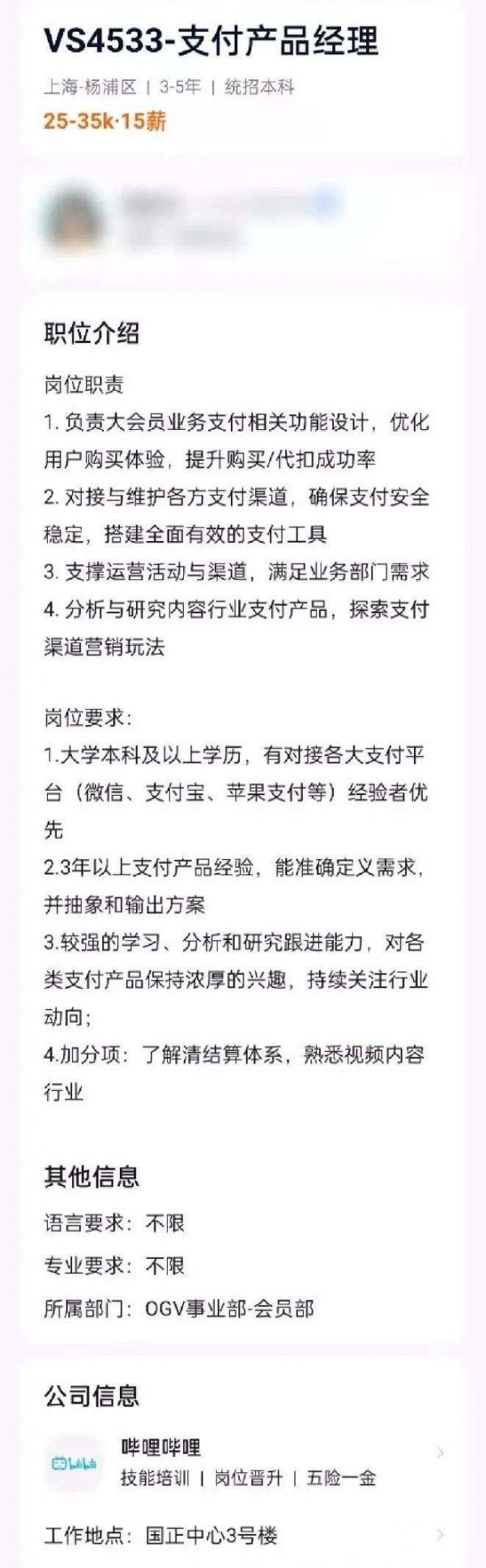 此外,早在去年,B站就已经放出高级/资深支付开发工程师等支付业务相关岗位。直至今年11月20日,记者仍可以搜索到资深/高级支付产品经理、支付产品经理等招聘岗位,工作职责包括“负责大会员业务支付相关功能设计,优化各场景用户购买体验,提升整体付费购买/代扣成功率”“负责直播业务支付结算相关功能设计,优化产品体验”等。