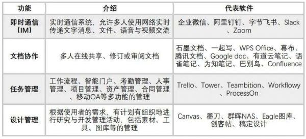 盘点目前主流的协同办公软件,大体可以分为四类:即时通信,文档协作,任务管理和设计管理。