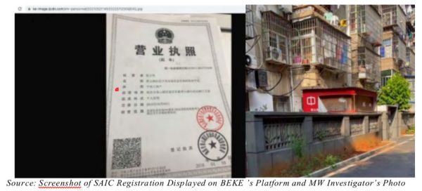 浑水举例称,南昌二十山中的中环店,该店在其平台上显示“活跃”,该经纪公司有近100 处待售物业。但是,当调查员根据注册信息访问该店的地址时,发现是一个废弃的店面。