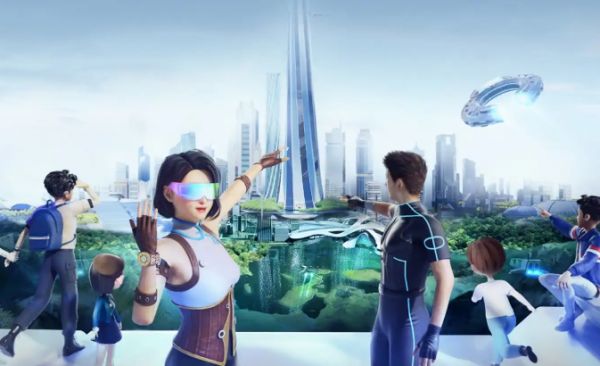 “一篇广袤的世界中,几根透明的玻璃圆柱拔地而起通往天际,其下遍布着大大小小的建筑只有轮廓没有细节,一群发型、衣服差不多的人在眺望远方,空中偶尔划过具有未来感的飞船……”上述场景来自百度元宇宙产品希壤。
