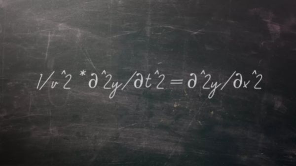 在这个方程中,v是波的速度,其他部分描述的是波在一个方向上的位移。利用扩展到二维或多维的波动方程,研究人员得以预测水、地震波和声波的运动。该方程也是量子物理学中薛定谔方程的基础,后者使许多现代计算机设备成为可能。